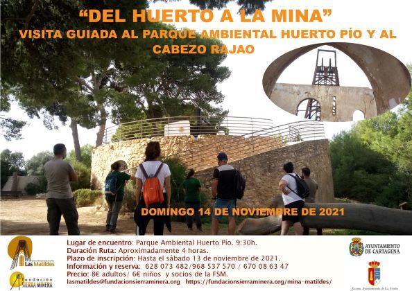 El domingo 14 de noviembre de 2021, la Fundación Sierra Minera desde el Centro de Interpretación de la Mina Las Matildes y el Parque Ambiental Huerto Pío han programado una jornada muy especial en la que poder visitar en la misma mañana dos espacios singulares de nuestro patrimonio cultural y natural, y descubrir la íntima relación entre las minas y el mundo rural.