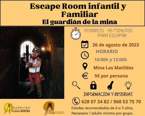 actividades, Actividades con niños en Cartagena, Cartagena, escape room, Fundación Sierra Minera, Mina Las Matildes, minería, Región de Murcia, talleres
