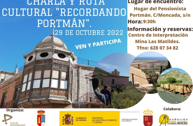 El sábado 29 de octubre se va a realizar una ruta cultural y participativa “Recordando Portmán”, organizada desde el Plan de Sostenibilidad Turística de Portmán y el Ayuntamiento de La Unión, con la colaboración de la Fundación Sierra Minera.