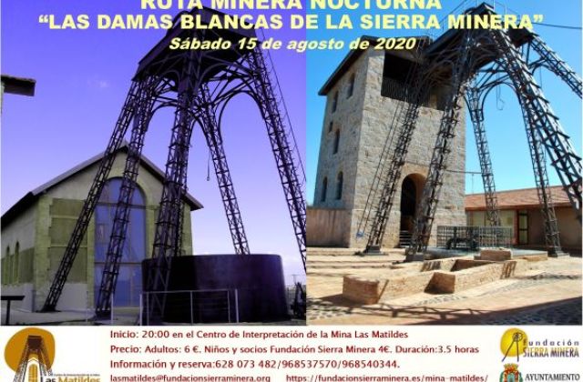 Los sábados 15 y 22 de agosto de 2020, el Centro de Interpretación de la Mina Las Matildes ha programado una actividad en horario de tarde-noche para evitar los rigores climatológicos y las altas temperaturas. Se realizará una singular visita nocturna y un recorrido guiado por el entorno minero de Las Matildes y Mina Blanca, “LAS DAMAS BLANCAS DE LA SIERRA MINERA”.